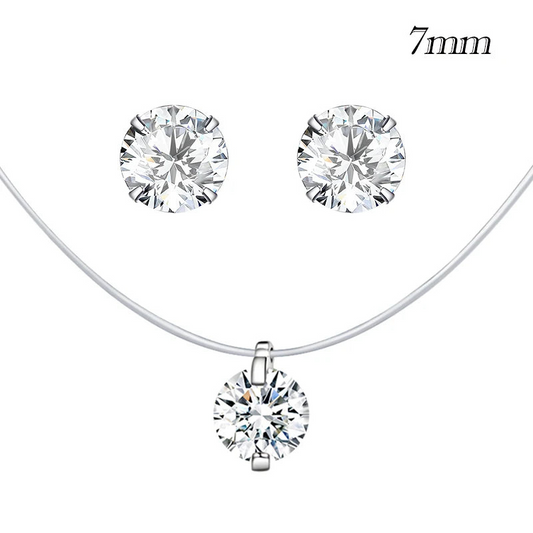 Collier Ras-du-Cou Femme avec Chaîne Invisible en Argent et Pendentif en diamant 1 ct