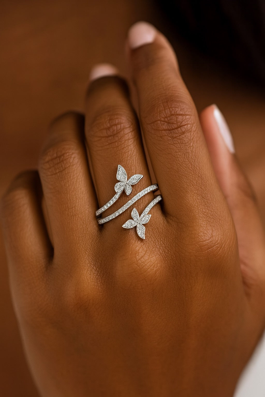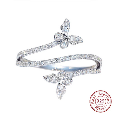 Bague Double Papillon en Argent 925 avec diamant 0.75 ct