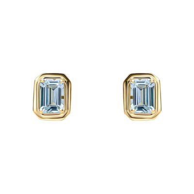 Beautiful natural aquamarines each set in simplistic yet modern 9ct yellow gold setting with traditional post and scroll backs. Make it a set with the matching pendant!