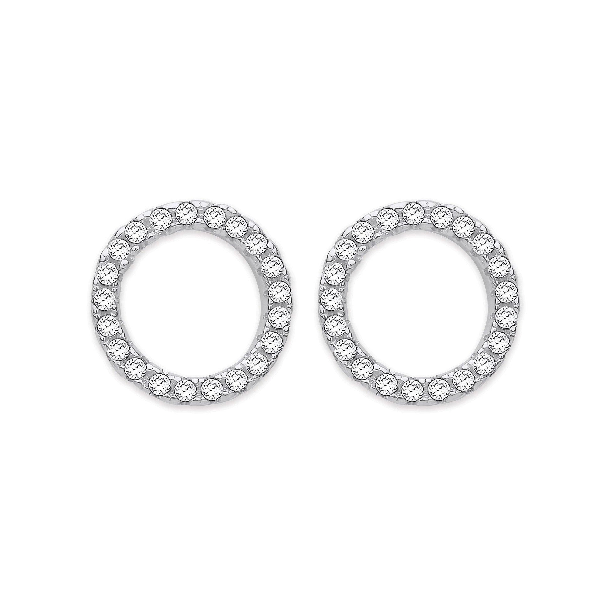 These stunning circle style silver earrings are set with beautiful brilliant cut cubic zirconias.
