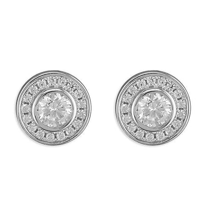 A beautiful pair of silver round style stud earrings, set with sparkling brilliant cut cubic zirconias