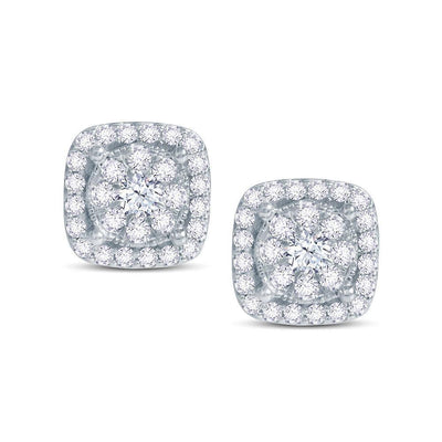 These sparkling double square halo 0.90ct diamond cluster stud earrings in 18ct white gold are set with round brilliant cut diamonds and will bring a touch of glamour to any outfit